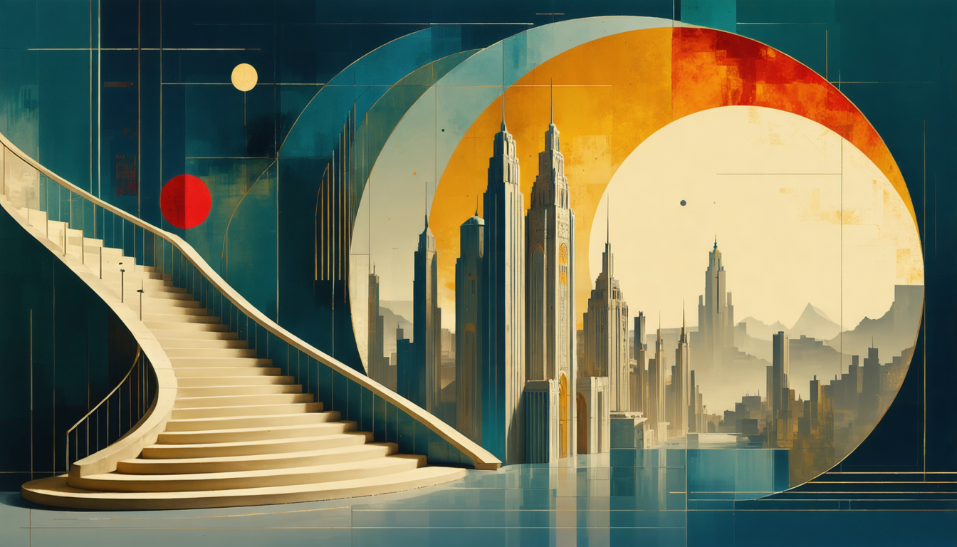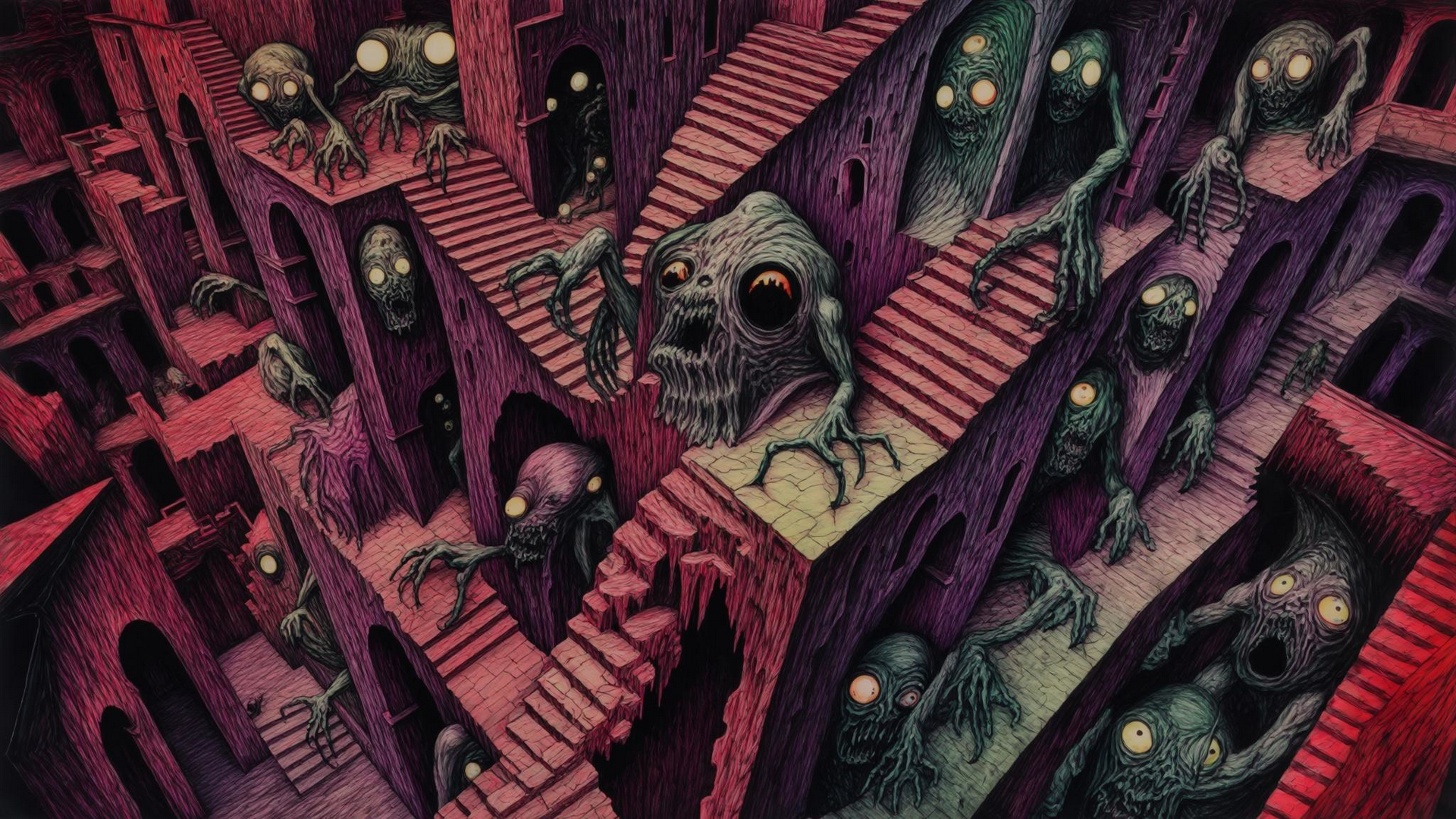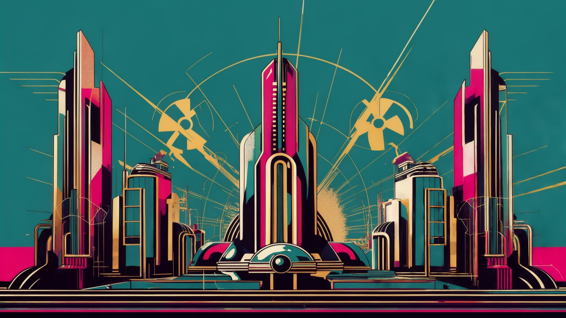 Impossible towers spiral into dead air. Art deco playgrounds bloom like hallucinated relics.