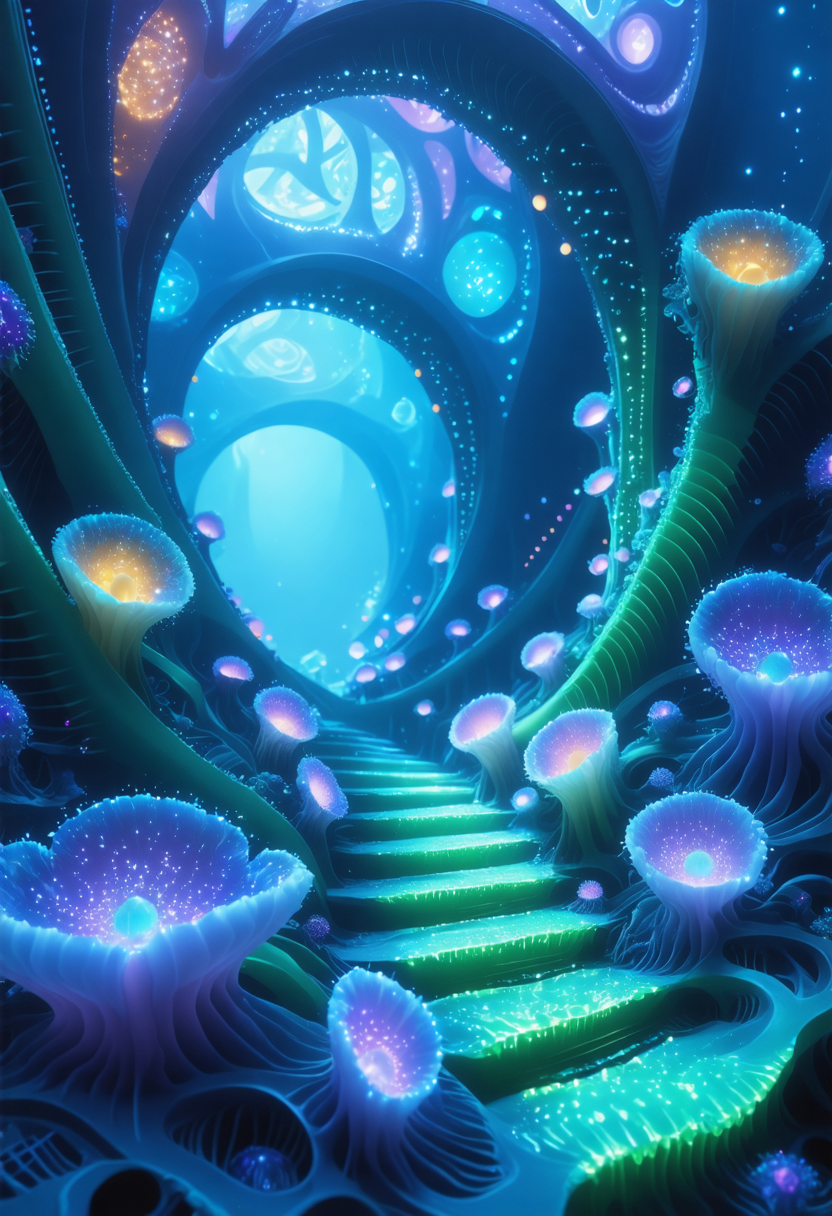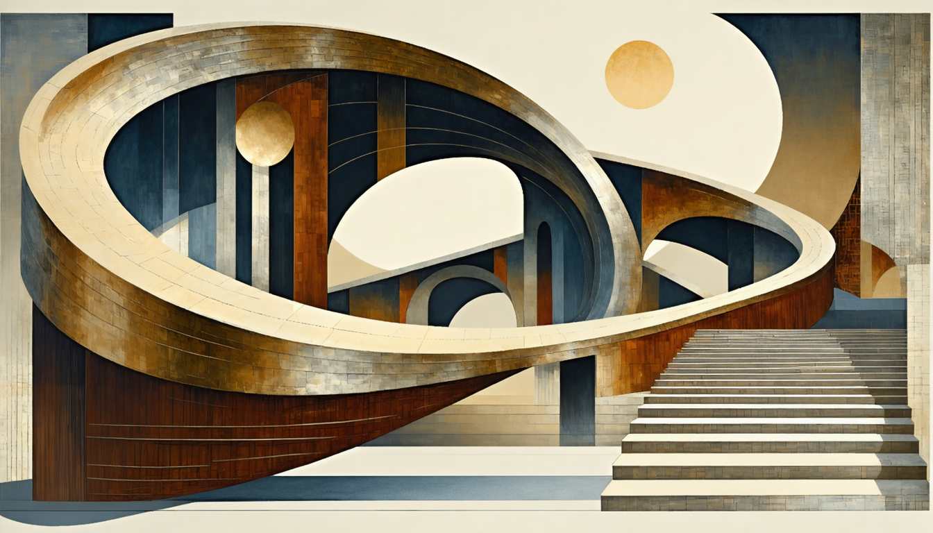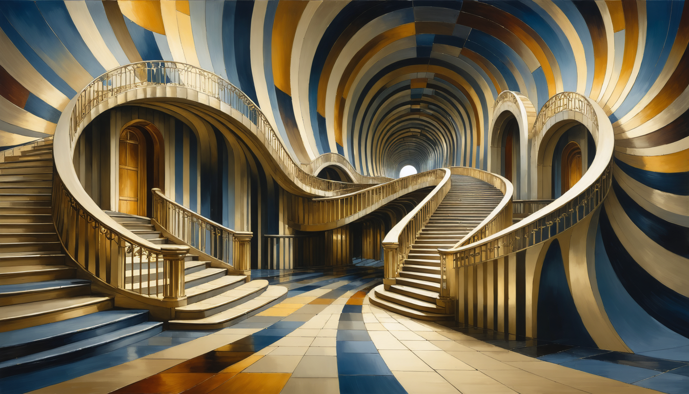 Impossible towers spiral into dead air. Art deco playgrounds bloom like hallucinated relics.