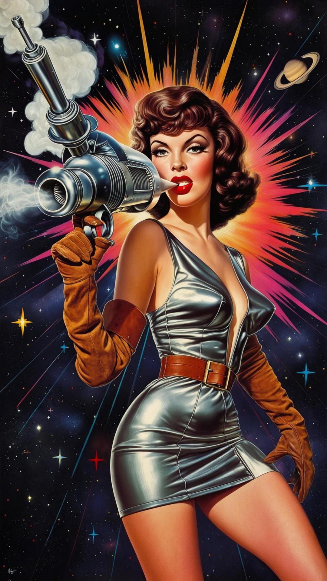 Here, the pinup is less a person than an archetype; a pose carried from mythic fantasy to sleazy wastelands, from psychedelic posters to disco lounges, from chrome rocket pulp to flannel-stained grunge.